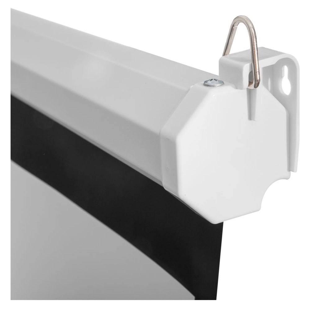 Ecranul este din material textil alb, mat, ce permite curatarea pentru intretinerea usoara, cu o zona vizibila de 172x172 cm. Modelul propus are o diagonala de 96 cm si un unghi de vizualizare de 160 de grade.