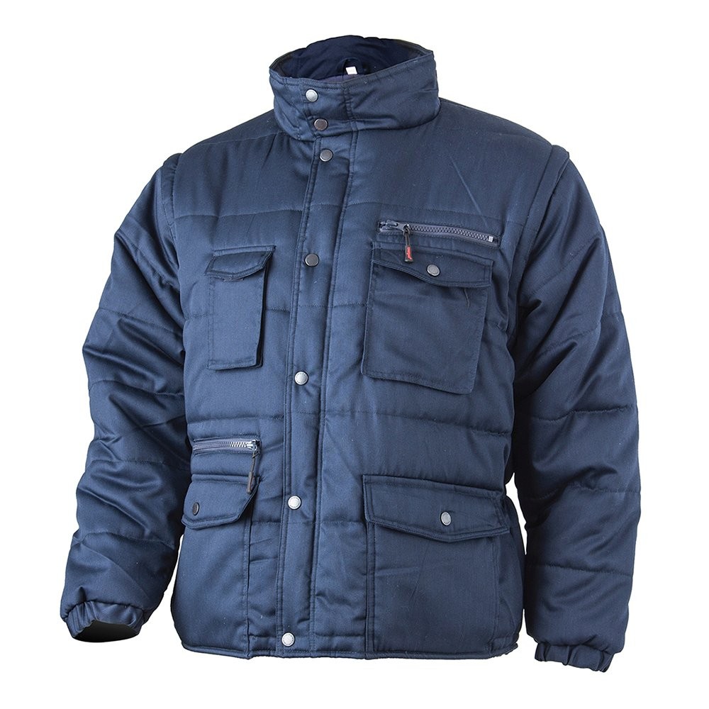 Haina bleumarin cu multiple buzunare si maneci detasabile. Posibilitate de purtare ca vesta.