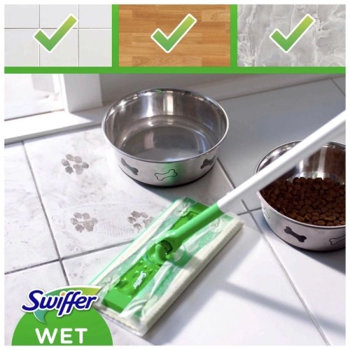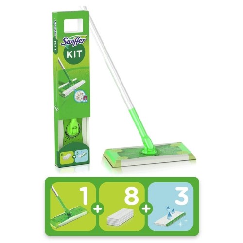 Trusa de baza include si 3 lavete umede. Lavetele umede pentru mopuri dizolva murdaria si murdaria, blocandu-l in nucleu si lasand in urma un parfum proaspat si curat. in plus, cu capul pivotant la 360° Swiffer Sweeper, puteti curata oriunde, chiar si in locuri greu accesibile, cum ar fi sub frigider, aragaz si masina de spalat vase, sub paturi, canapele si chiar si in colturi si margini unde maturile si mopurile nu pot ajunge intotdeauna; nu-i asa ca e uimitor?