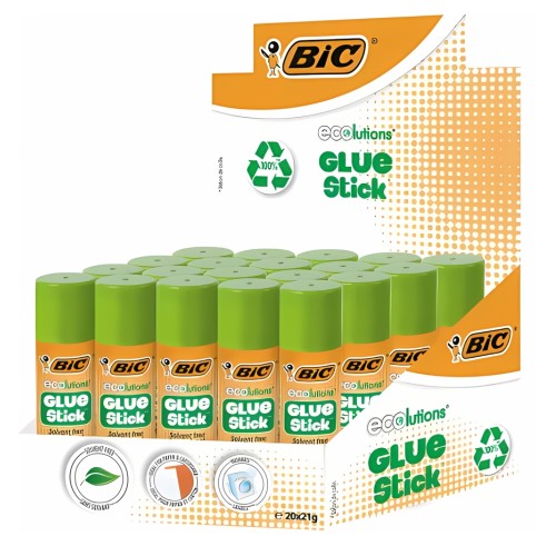 BiC ECOlutions lipici solid este fabricat din 97% ingrediente naturale, inclusiv apă și amidon de cartof, ceea ce îl face biodegradabil și compostabil. Adezivul puternic și durabil poate lipi hârtie, carton și alte materiale ușoare. Lipiciul se usucă transparent și neted, fără a lăsa reziduuri sau urme vizibile pe suprafață, ceea ce îl face ideal pentru proiecte școlare, activități de artizanat sau lucrări de birou.