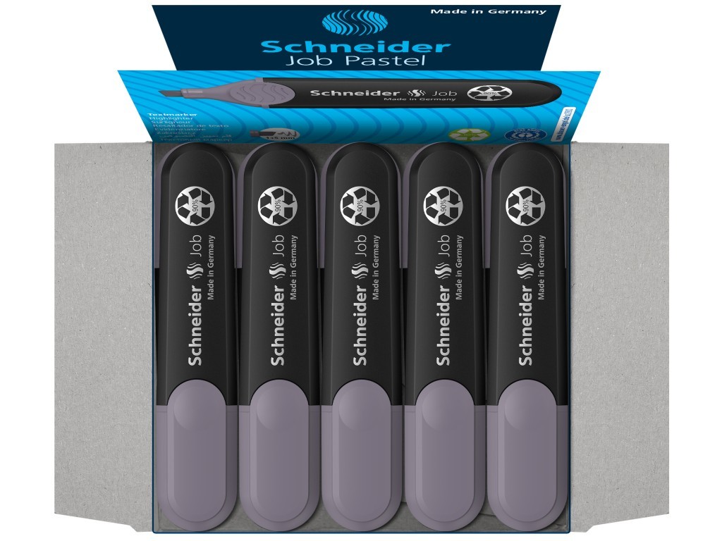 Textmarker Schneider Job pe bază de cerneală cu strălucire maximă și rezistență la lumină pe hârtie standard, de copiator și de fax. Corp din polipropilenă, complet reciclabil. Capacul are clip de prindere.