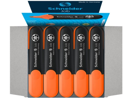 Textmarker Schneider Job pe bază de cerneală cu strălucire maximă și rezistență la lumină pe hârtie standard, de copiator și de fax. Corp din polipropilenă, complet reciclabil. Capacul are clip de prindere.